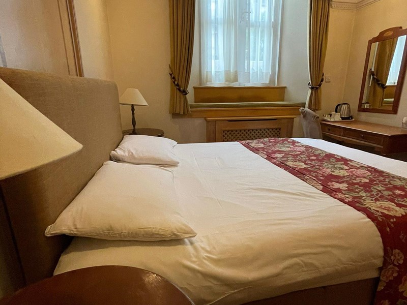Our double bedrooms feature a private bathroom complete with a shower, complimentary toiletries, and a hairdryer. Additionally, you'll find conveniences such as a secure deposit box, mini-fridge, an electric kettle, provisions for tea and coffee, and a flat-screen TV offering Freeview channels. The room is meticulously appointed with one double bed, a wardrobe, and a working desk to enhance your comfort. Moreover, enjoy the benefit of wireless internet access available throughout the entire premises.